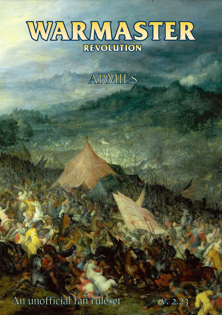 -Rulebook for Warmaster Revolution (WMR), which is a fan-based 2nd edition of rules for the Warmaster game. |